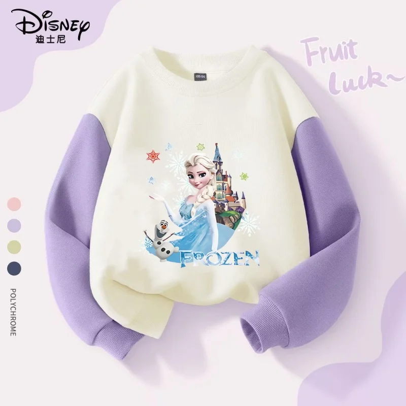 Autumn Baby Girls Cotton Clothes Disney Princess Elsa Print Long Sleeve Sweatshirt Children Cartoon O-Neck Soft Breathable Top