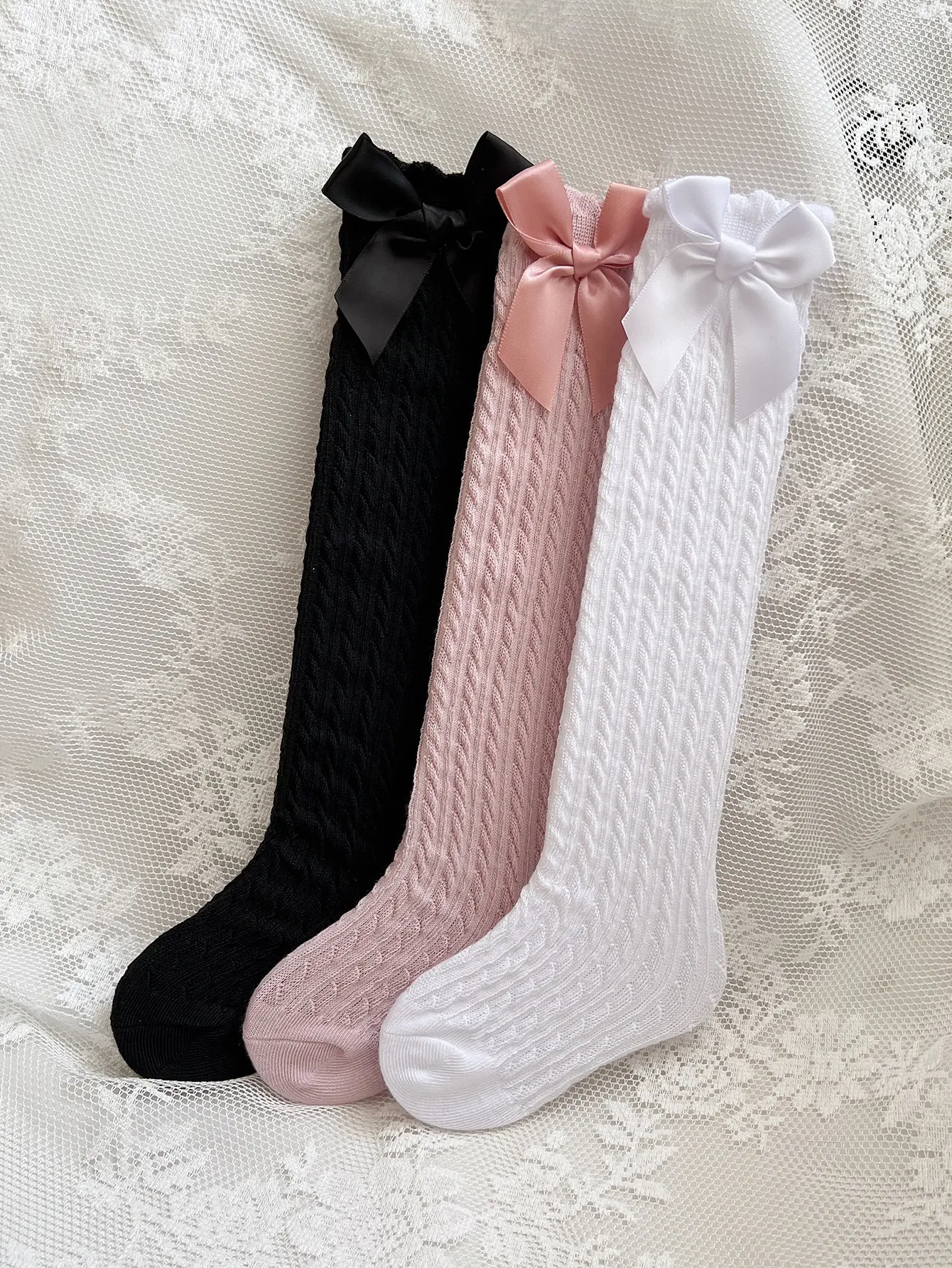 3pairs Girls Bow Decor Over The Calf Long Socks