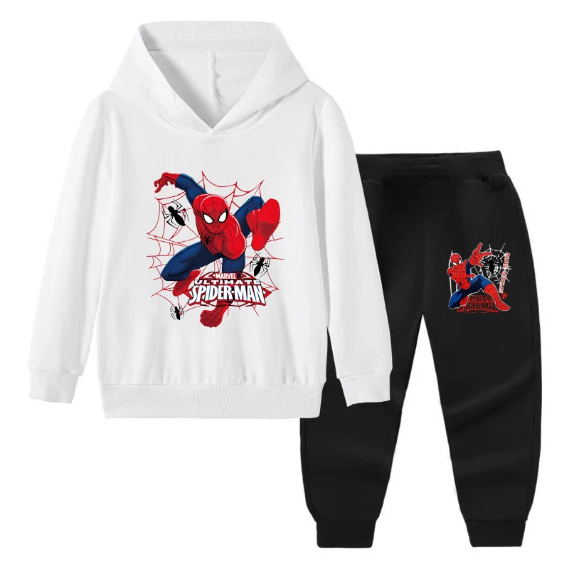 Disney Spider-Man Printed Thin Hoodies Sweatshirts Children's Sets Child Boy Tops + Pants 2 Pcs Suits Kids Boys Tracksuits Set