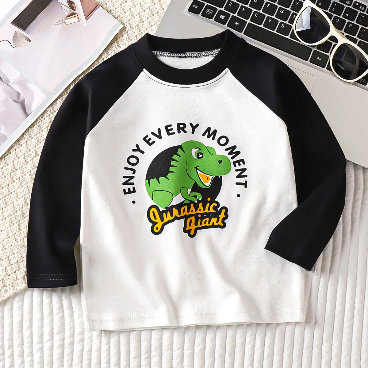 Dinosaurs Long Sleeve Boys Sweatshirts Shirts 2-7T All Print Autumn Spring Kids Hooded Children's Clothes Baby Sport Shirts