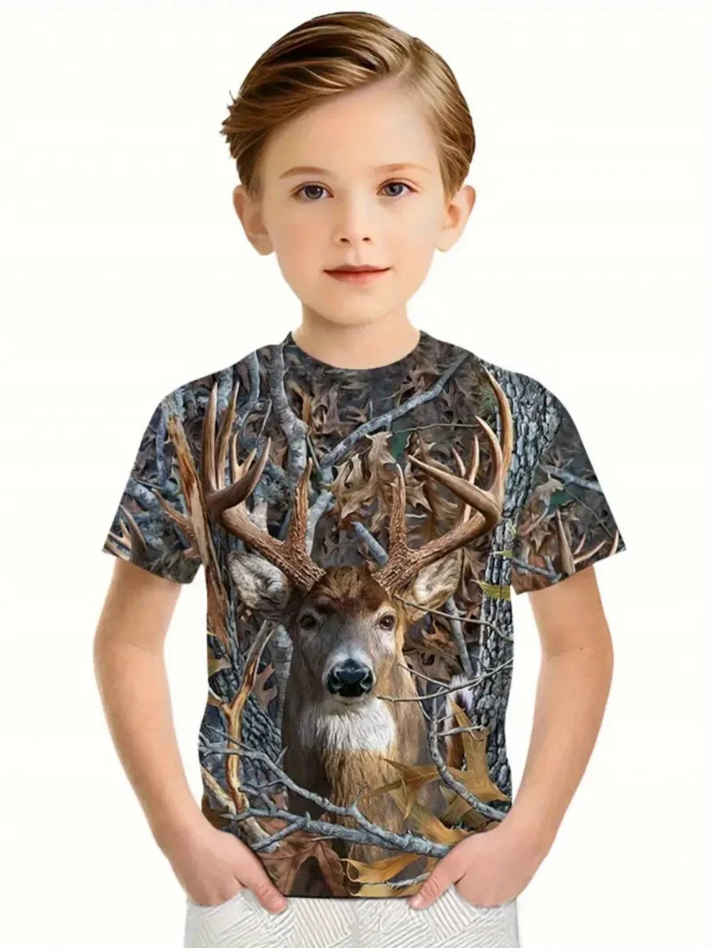 Camouflage Hunting T-Shirt Forest Print Boy T Shirt Outdoor Sport Short Sleeve Trip Tactical Training Oversize Top Kids Clothing