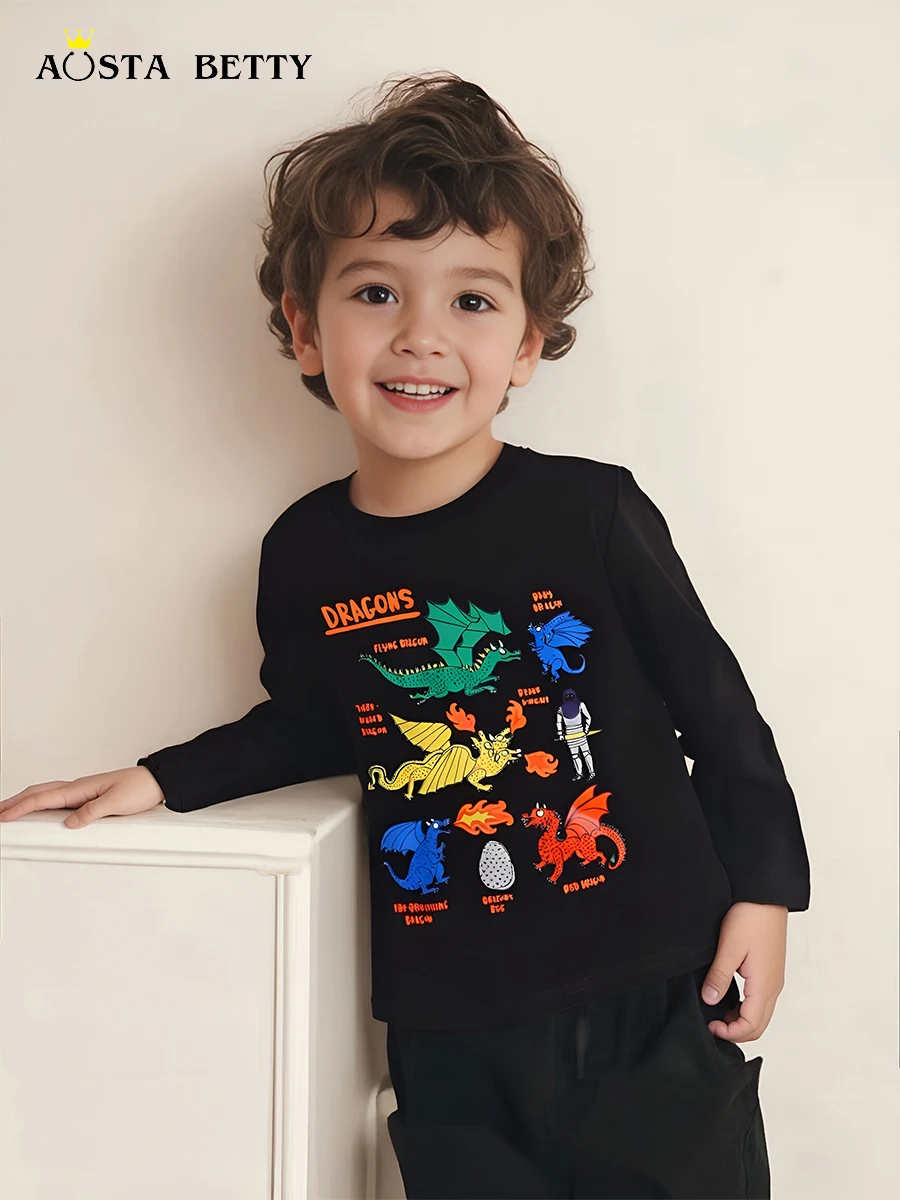 Autumn new children's T-shirt European and American fashion dinosaur print boy long sleeve T-shirt cotton children bottoming shi