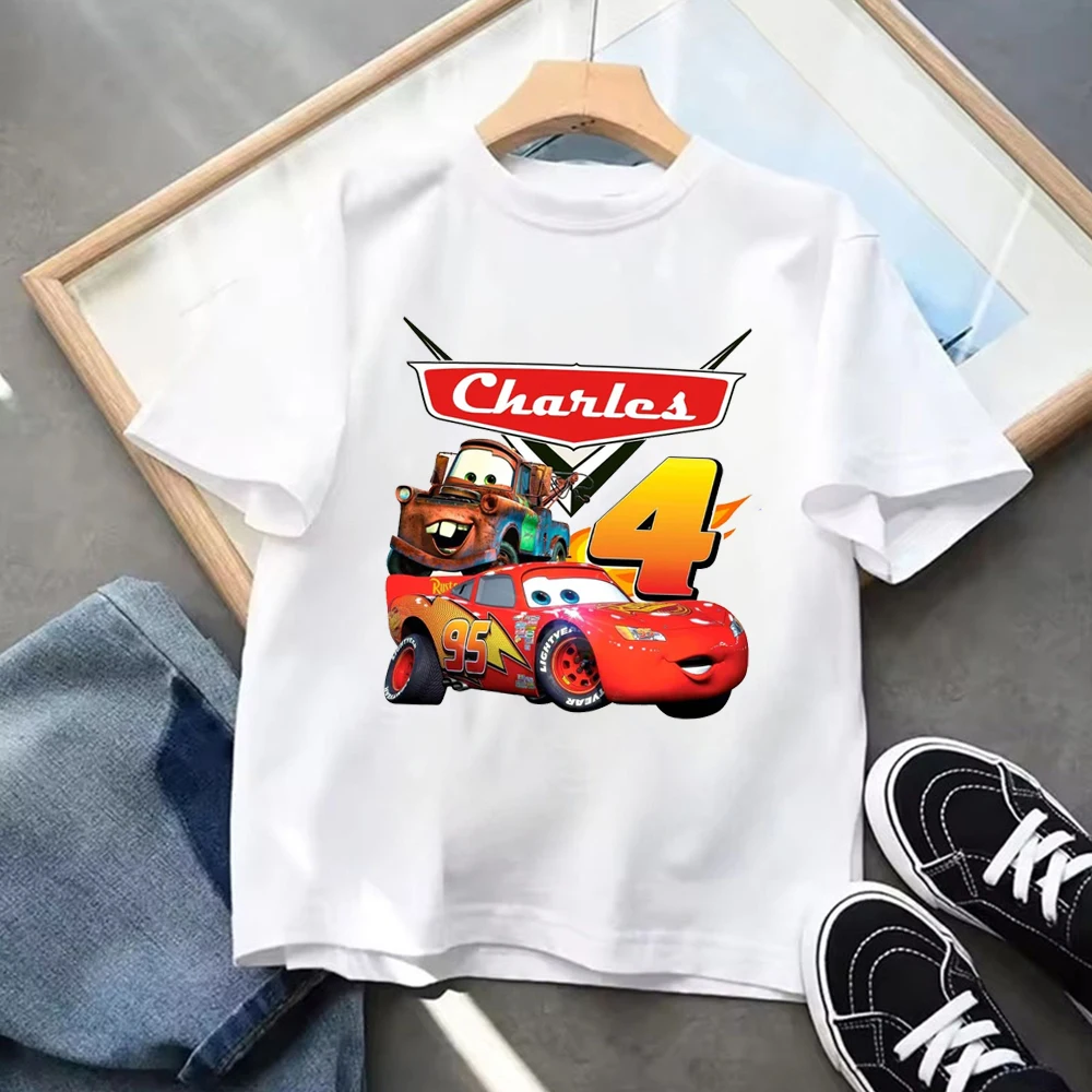 Lightning McQueen Number T-Shirt Cute Cartoon Figure Print Boys Clothes Cotton Absorbent Breathable Clothing Kids Birthday Gift