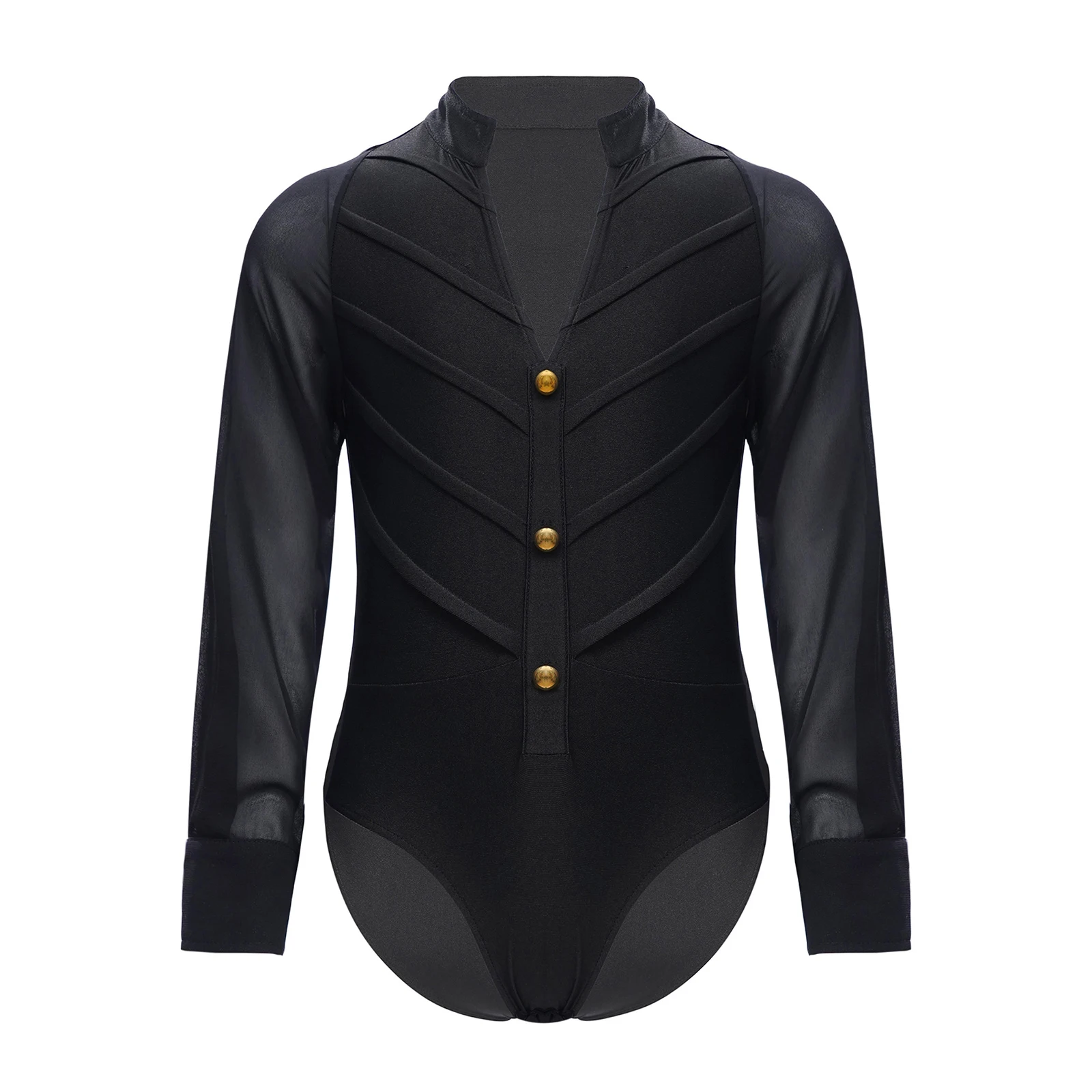 Kids Boys Latin Jazz Dance Leotard Long Sleeve Stand Collar Bodysuit for Ballroom Competition Party Stage Performance Dancewear