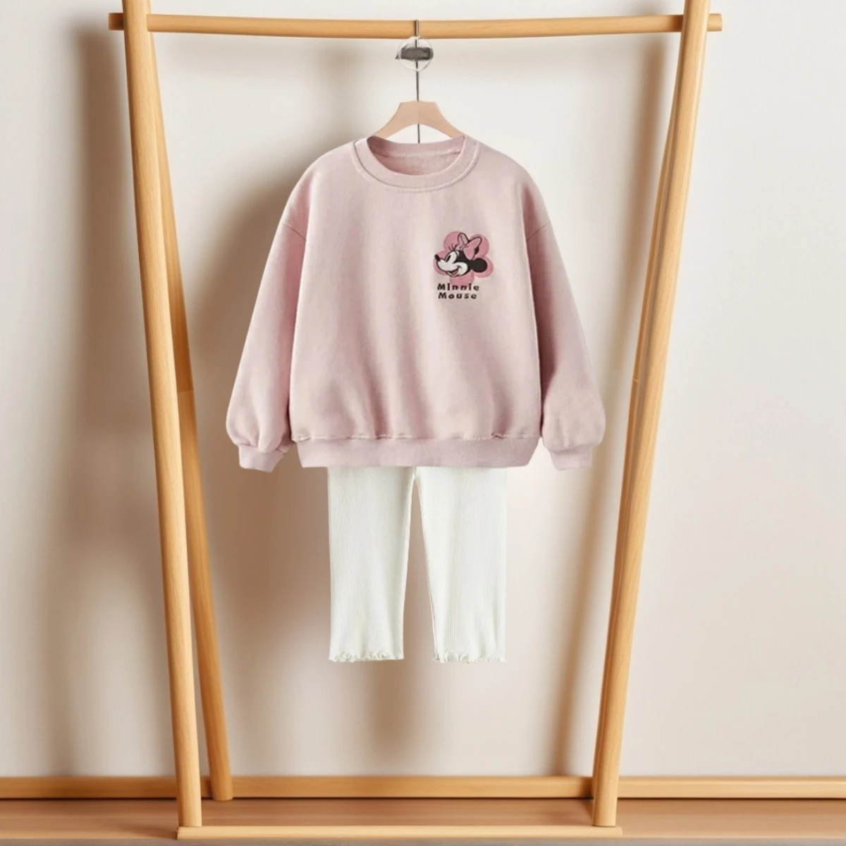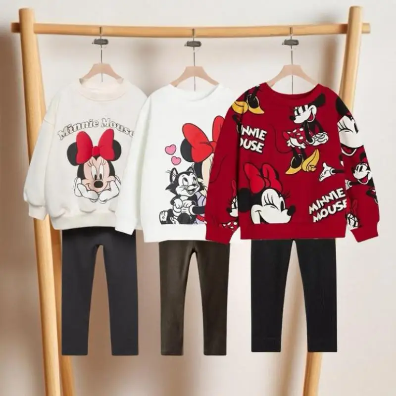 Disney Minnie Baby Girls 2 Piece Set Autumn Clothing Popular Brand Kids O-neck Hoodie + Leggings Children's Casual Outfits 6m-6y