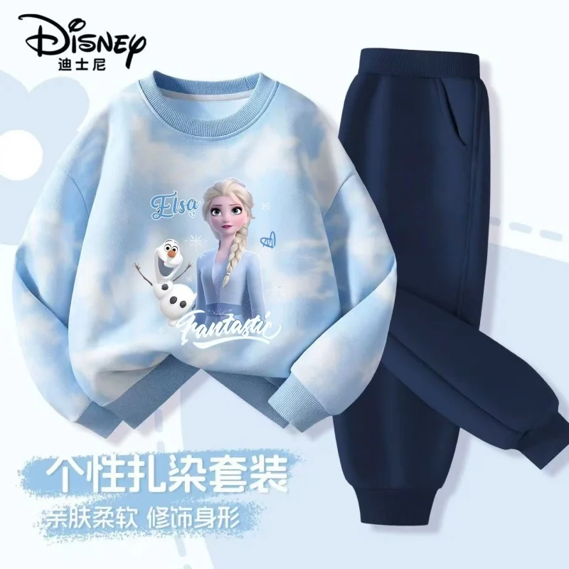 Autumn Baby Girl Clothes Set Children Disney Princess Elsa Printing Tie-Dye Top and Pants Bottom 2 Pieces Suit Cotton Tracksuit