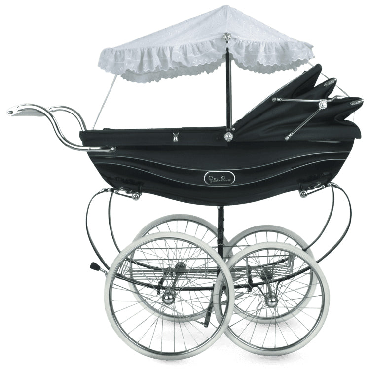 This beautiful sun canopy is the perfect way to protect your baby from the sun when out and about with your Balmoral coach pram. The high polish chrome frame matches the Balmoral chassis, while the cover is crafted from white cotton Broderie...  Read more
