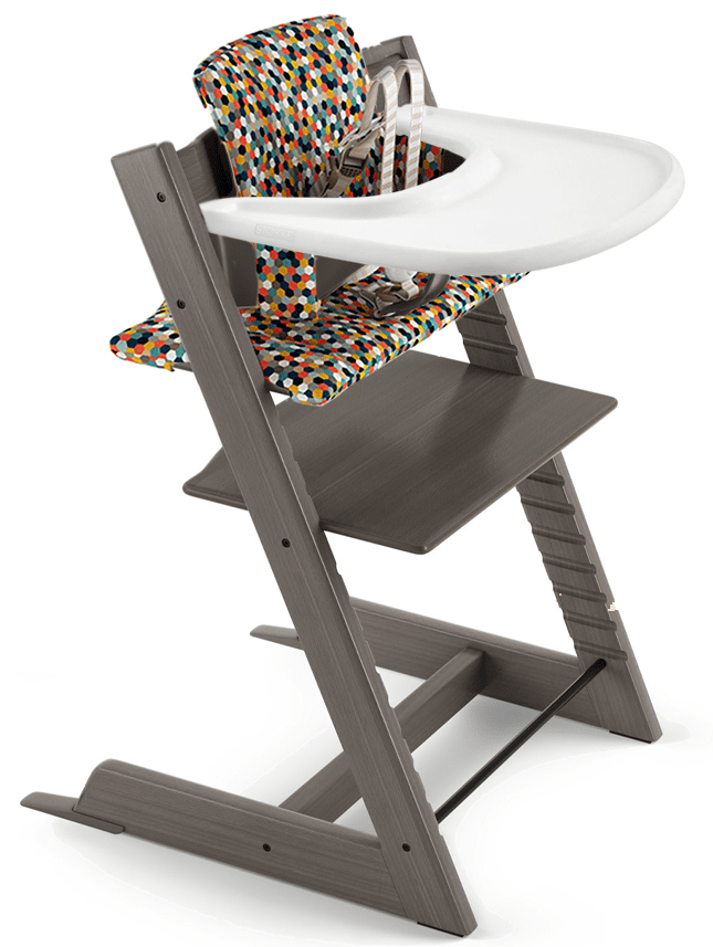 The Tripp Trapp Chair is conveniently offered in a package that also provides a Tripp Trapp Baby Set with harness and gliders, plus a Tripp Trapp Classic Cushion and Tray. When used together, these items make a standalone high chair, which safely...