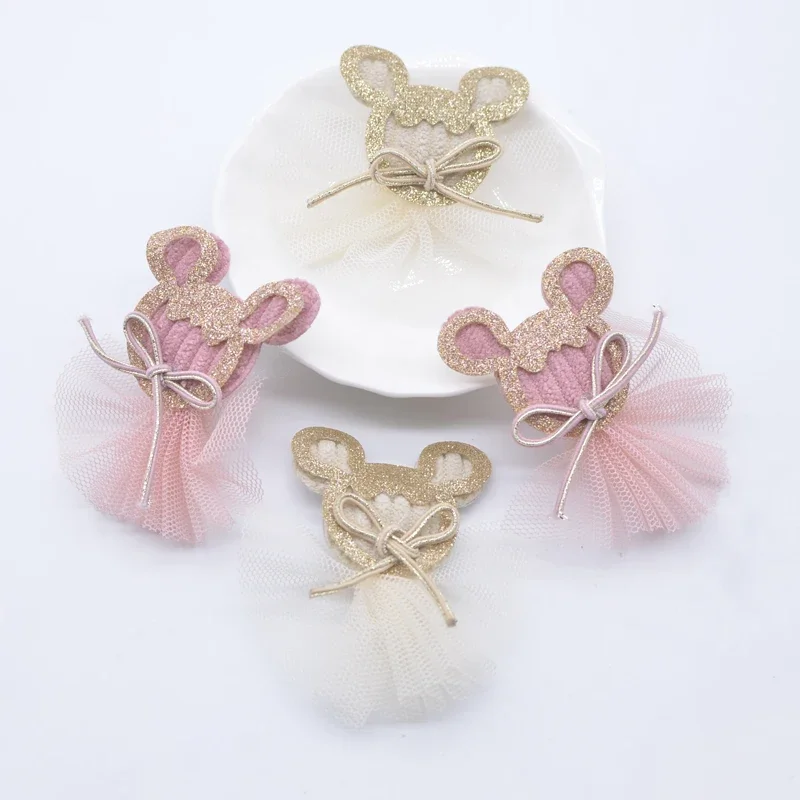 10Pcs 5*5.5cm Mouse Head Mesh Skirt for DIY Baby Clothes Hat Patch Socks Gloves Decor Fabric Sewing Headwear Applique Accessory