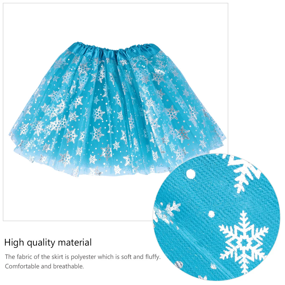 Snowflake Tutu Skirt for Girls Elastic Band Comfortable Durable Party Ballet Dance Performance Mesh Tulle Skirt