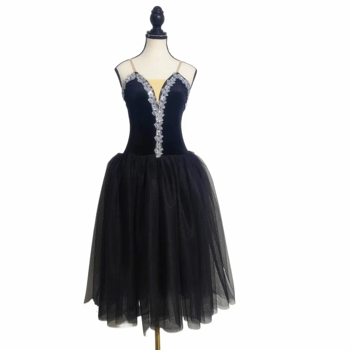 Ballet Tutu Skirts Black Blue Velvet Top Long Dress Performance Costumes for Princess Dance Practice Tutu Dress Women