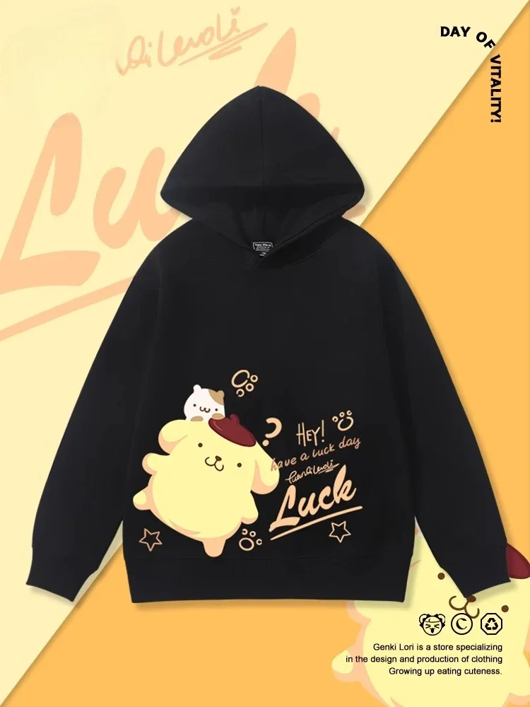New Autumn and Winter Long Sleeve Pullover Top Hoodies Pompompurin Children's Plus Velvet Hooded Sweatshirt Boys Girls Cute Top