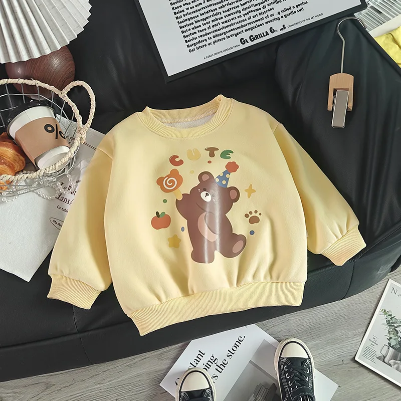 Autumn Winter Little Boy Sweatshirt Integrated Velvet Turtleneck Infant Boys Pullovers Bear Printed Long Sleeve Kid Baby Boy Top