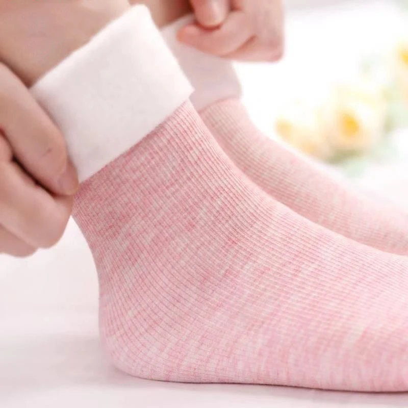 Women's Socks Cotton Plus Velvet Thick Autumn And Winter Soild Middle Tube Socks Floor Socks Snowy Warm Socks calcetines