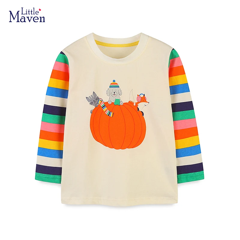 Little Maven Boys Tops Autumn Spring Halloween Clothes for Children Kids Cartoon pumpkin Rainbow Long Sleeves T-shirt Cotton