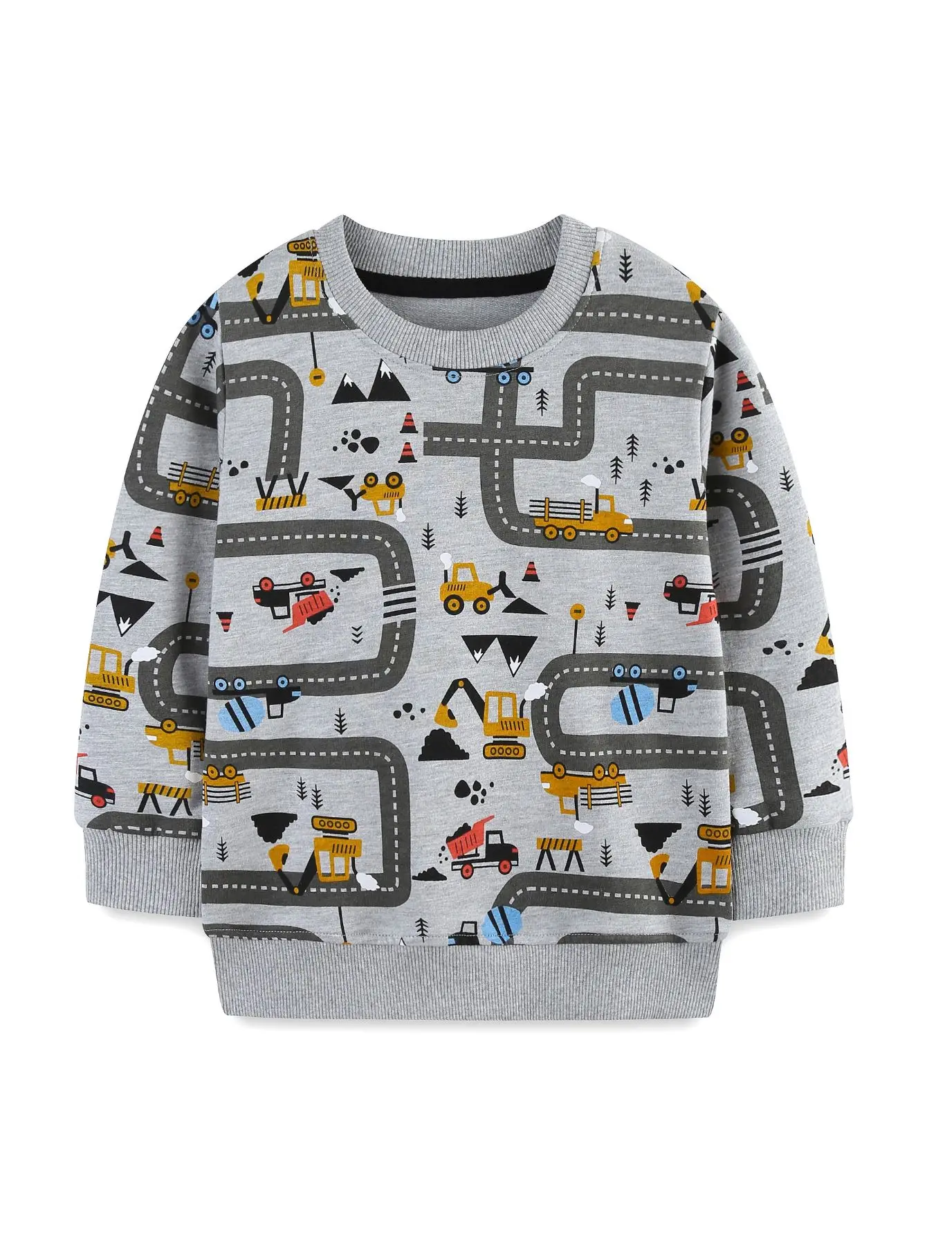 Boys' 100% Cotton Hoodie with Randomly Printed Construction Vehicles & Roads - For Spring & Autumn