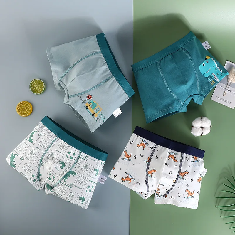 4-Piece Boy Shorts Cotton Panties High-quality Kids Boxer Shorts Full Print Cartoon Boys Boxer Breathable Children Underwear