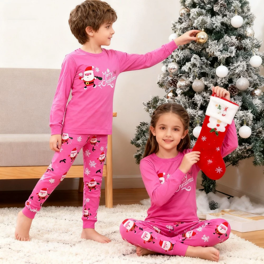 2025 Christmas 100 Cotton Pyjamas Children Santa Clothes Soft Long Sleeve Boy Girl underwear Xmas Set Kid Sleepwear+Pant Costume
