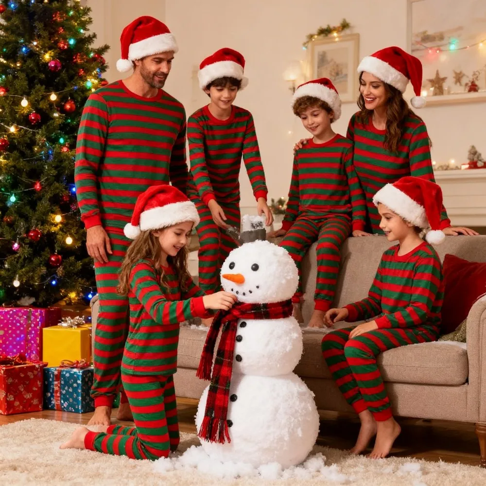 2025 New Family Mathcing Pajamas 2pcs 100% Cotton Sleepwear Suits Men Women Children Casual Comfortable Pyjama Striped Xmas Look  Read more