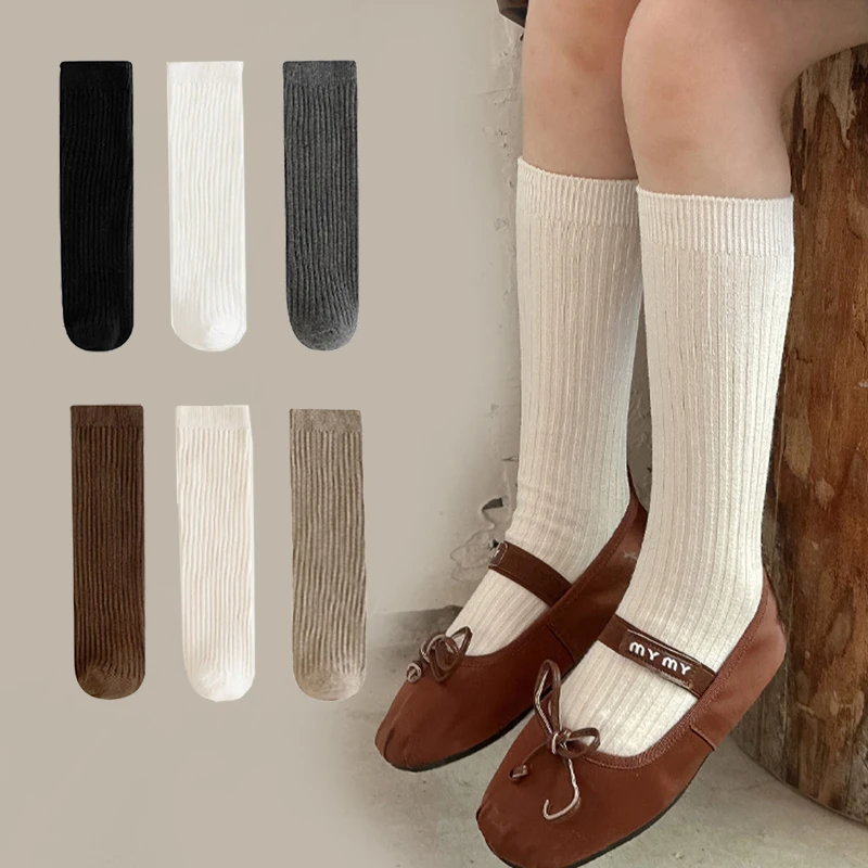 3Pairs/Lot Kids Girls Boys Long tube Socks Baby Soft Cotton Long Sock Cute Spanish Stripe Solid Children Socken For 1-8Years
