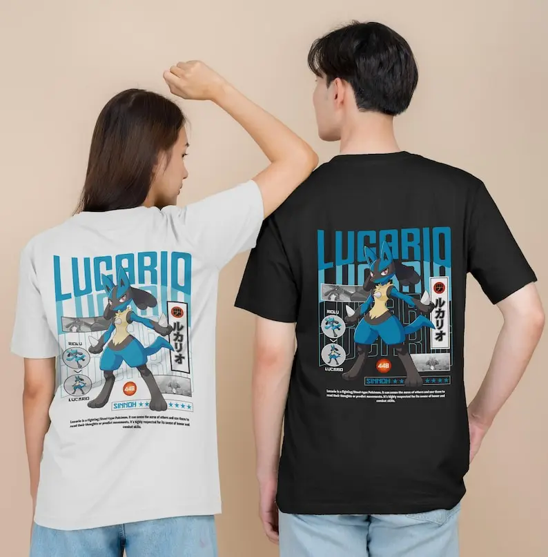 Japanese Anime Pokemon Lucario T-Shirt Y2k Tees Fashion Parent-Kid T-Shirt Cotton Print Short Sleeves Tee Harajuku Y2K Tee Tops  Read more
