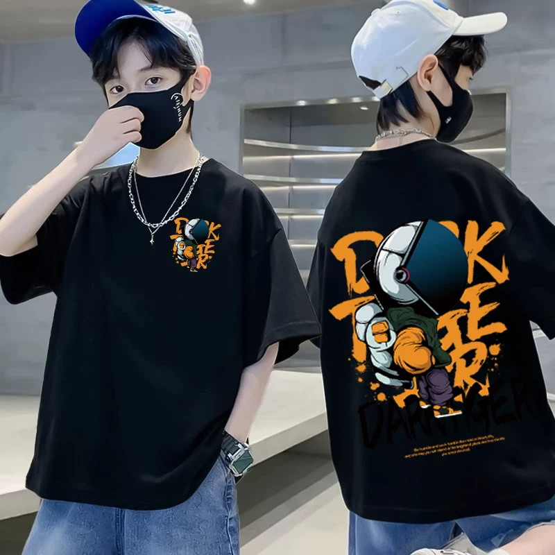 Summer Kids Clothes Astronaut Cartoon Print T Shirt Streetwear 100%Cotton Tops Children Boys Girls Clothes Short Sleeve Tees