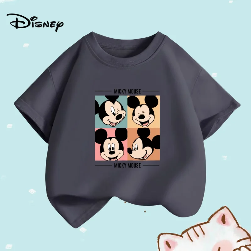 Summer Children Boy Cotton Clothes Disney Happy Mickey Cartoon Prints T-shirts Fashion Kid Baby Girls Short Sleeve Crew Neck Top