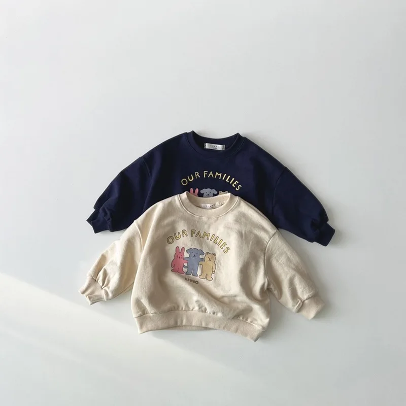 2025 Autumn New Cute Cartoon Print Boys Girls Long Sleeve Tops Sweatshirt Cotton Baby Casual Pullover Children Letter Sweatshirt