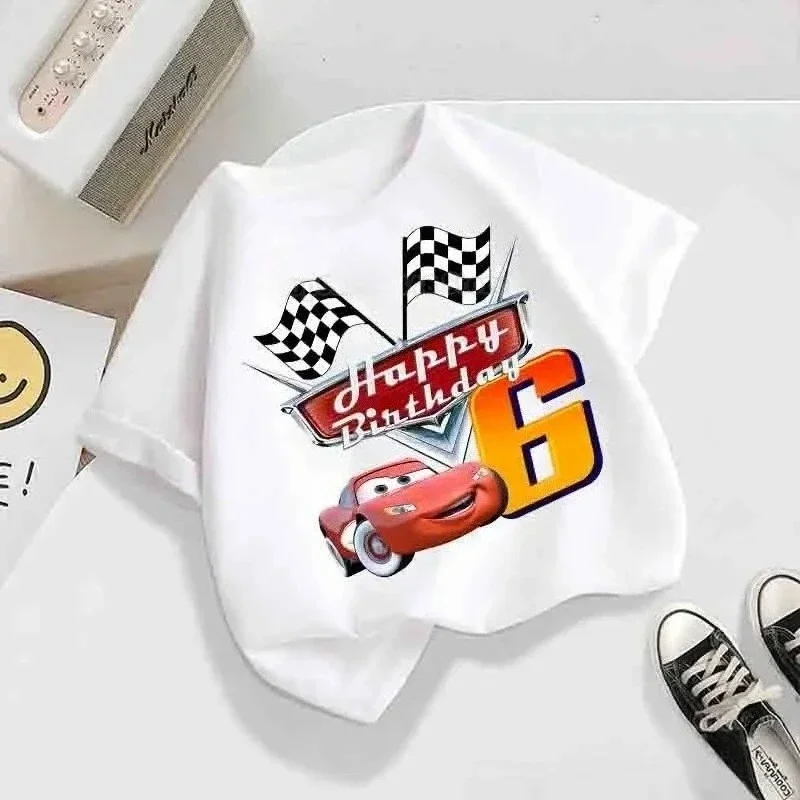 Lightning Mcqueen T-shirt for Kids Clothes Birthday Number 1-9 Print Children's Clothing Party Wear Cotton Tops Disney Cars Tees