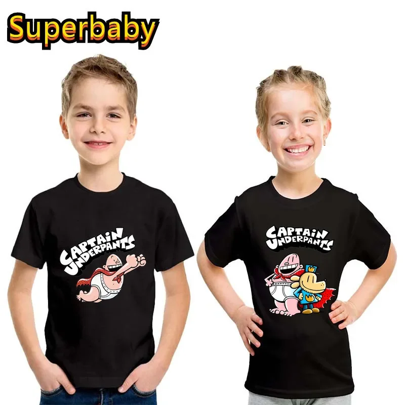 Hot Sale Cartoon Kids T shirt Captain Underpants Superhero Graphic Funny Baby Boys Girls Clothes Summer Children Cotton T-Shirt