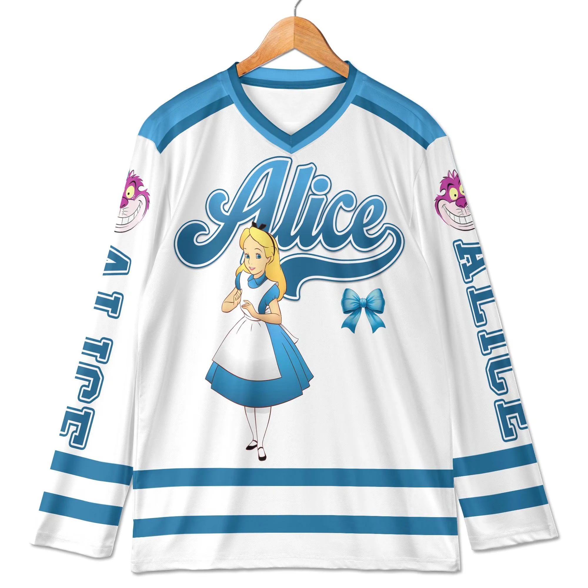 Disney Alice In Wonderland Hocky Player Jersey Adult Kids Long Sleeve T-Shirts Breathable Quick-drying Comfy Soft Strentchy