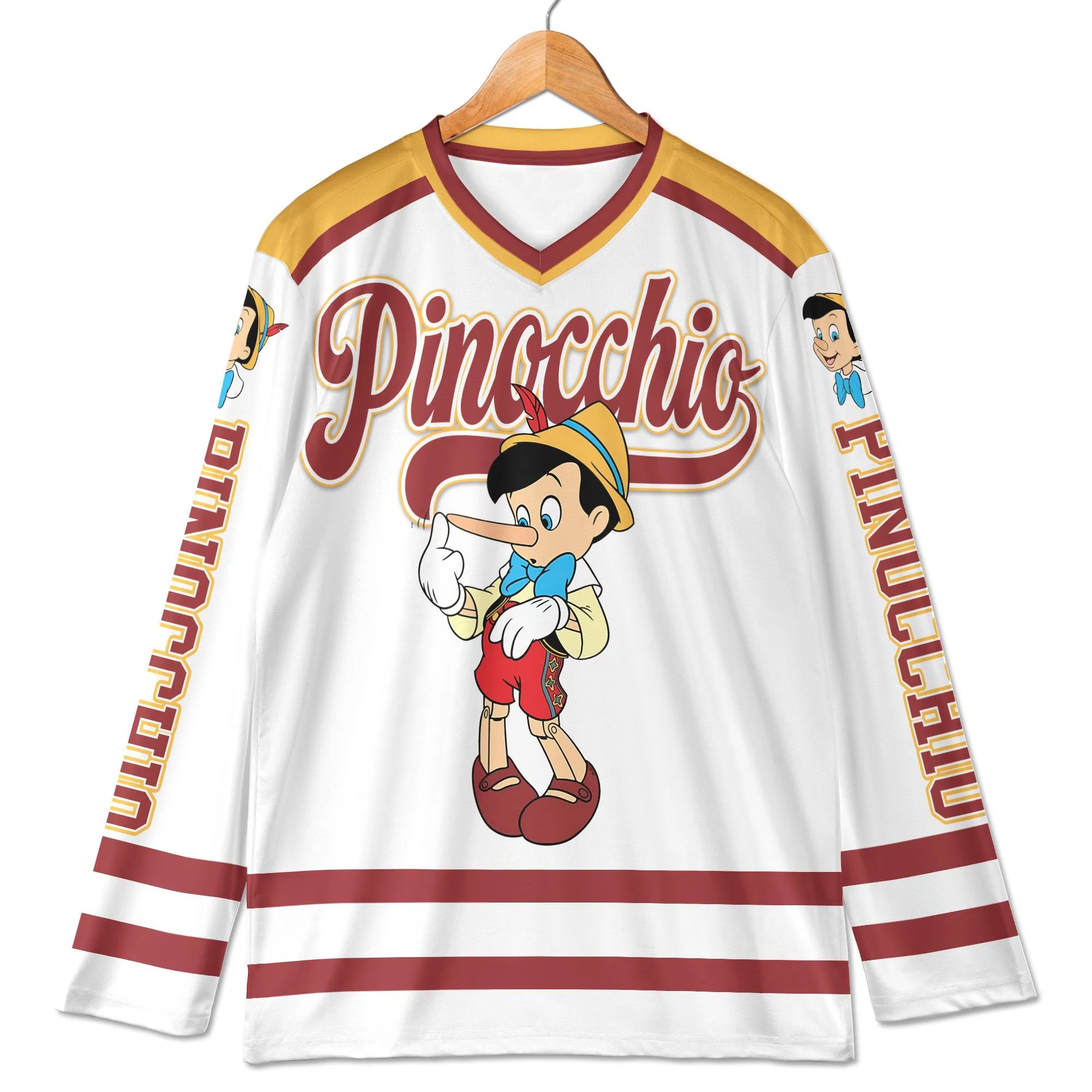 Disney Pinocchio Hocky Player Jersey Athleisure Adult Kids Long Sleeve T-Shirts Breathable Quick-drying Comfy Soft Strentchy