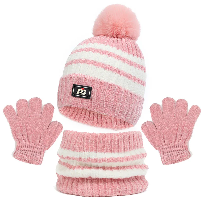 Children Winter Warmth Windproof fashionable Hats Scarves Gloves Three-piece Set Piled Thickened Boys Girls Warm Baby Wool Hats