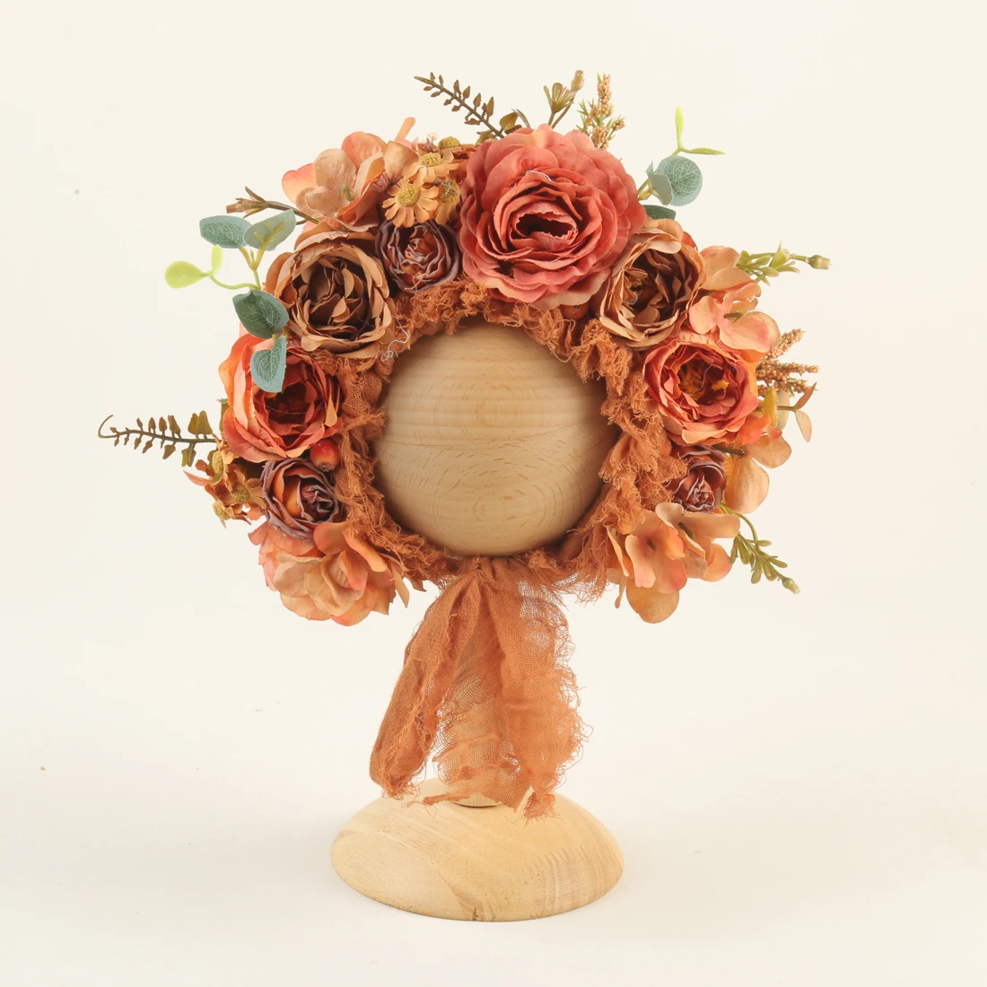 Vintage Baby Girl Floral Bonnet Handmade New Wool Felt Garden Flower Hat Newborn Photography Props Knitted Stretch Cap