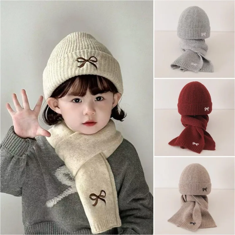 Winter children's hat and scarf two-piece set, windproof and warm, stylish knitted wool hat for boys and girls..