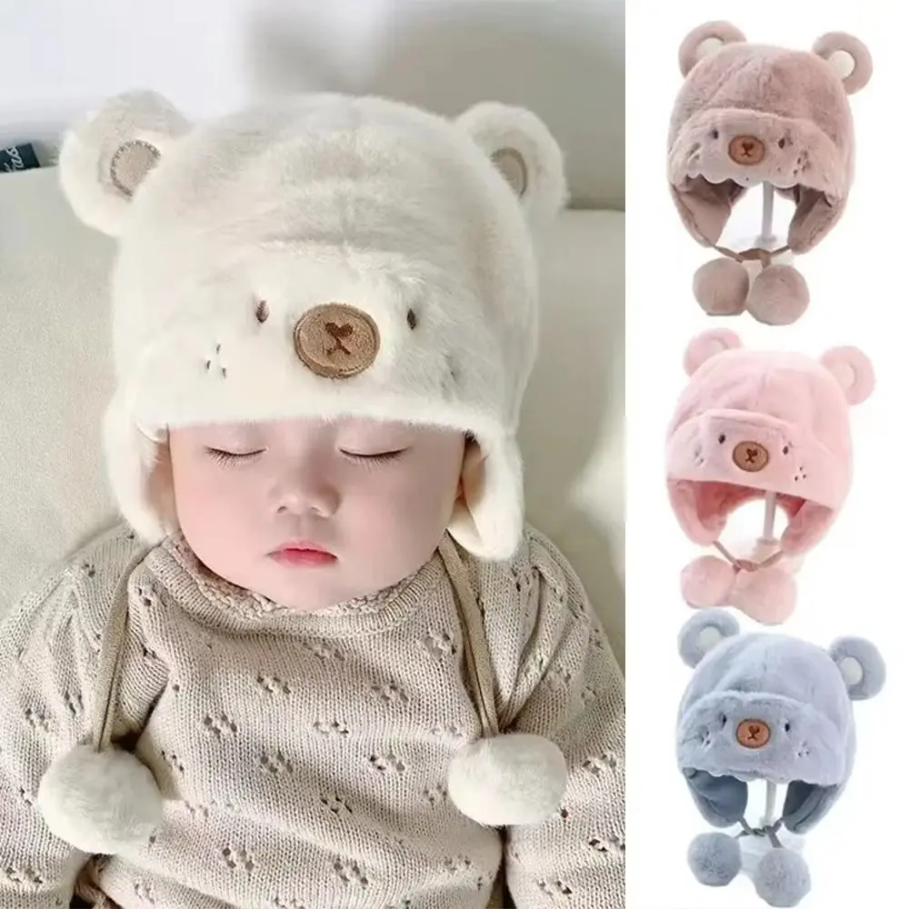 Lovely Winter Baby Bear Hats Warm Soft Newborn Bonnet Hats Fleece Wool Ear Protection Boys Girls Beanie Cap Kids