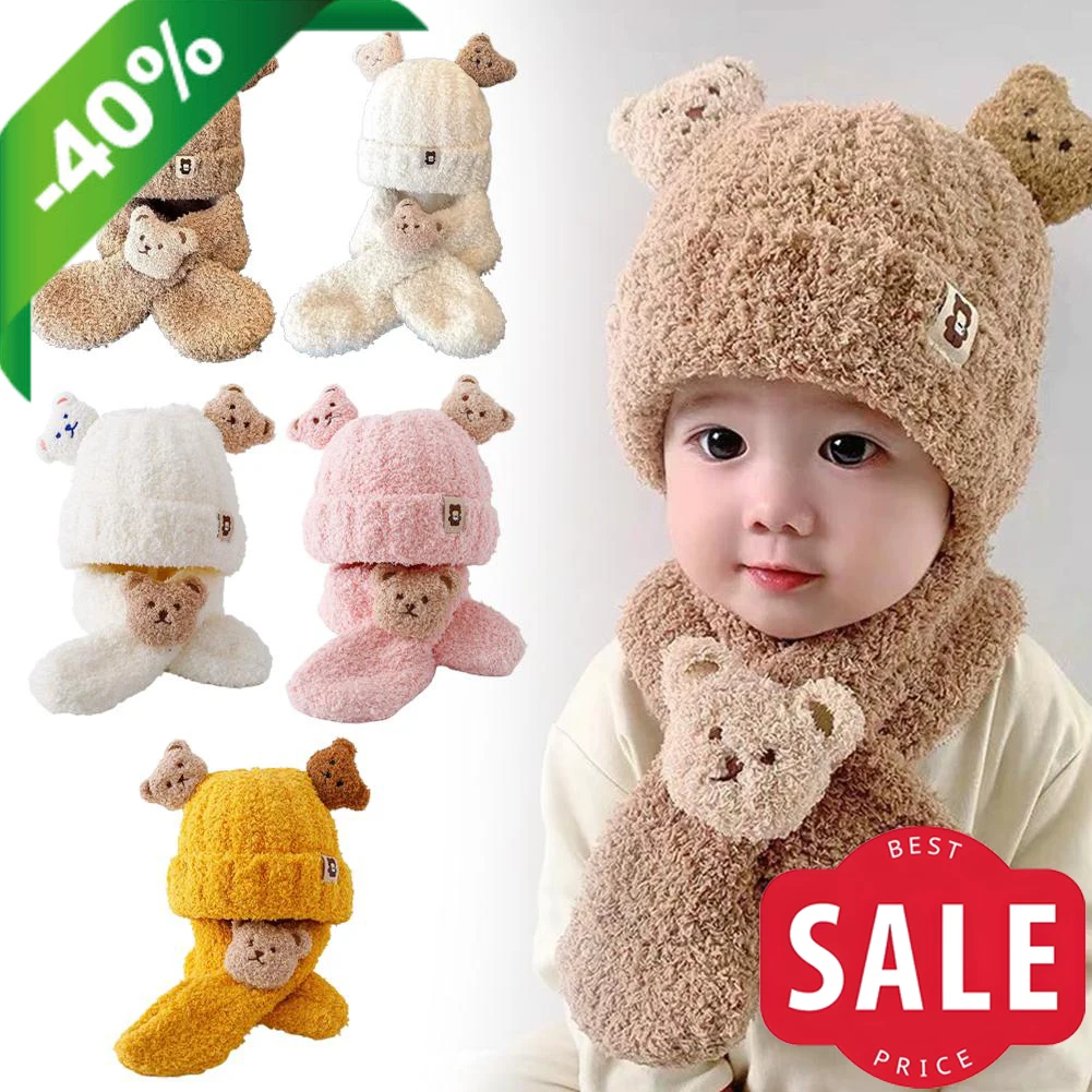Fluffy Bear Hat Scarf Toddler Winter Hoodie Hat Scarf for Children From 3 Months to 1.5 Years Old Thick Fleece Skull Caps