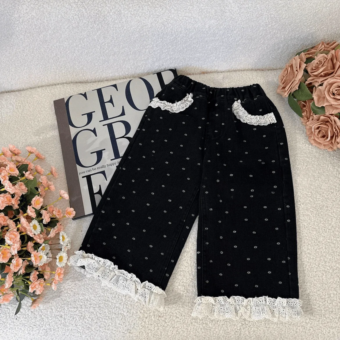 2025 autumn new girls pants medium and children's versatile fashion wear Korean version of girls lace casual pants