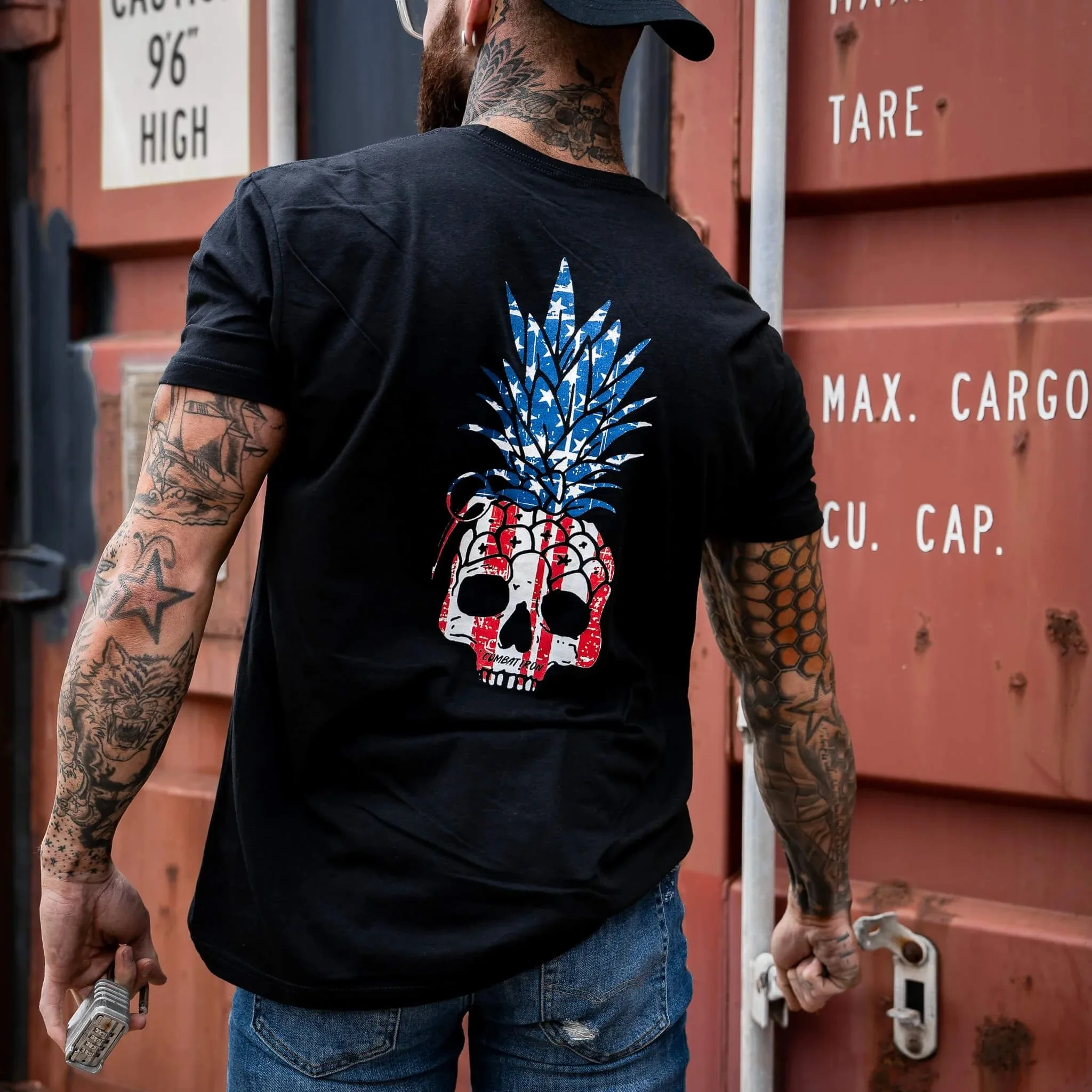 Men's Skull Gun Pattern Printed T-shirt, Casual and Fashionable Short-sleeved Cotton T-shirt, Summer Brand Streetwear Top