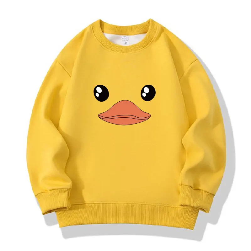 Duck Smiling Face Graphic Print Baby Girls Sweatshirt Cotton Tops 2025 Autumn Fashion Kids Boys Sweatshirt Teen 6 8 10 12 Years