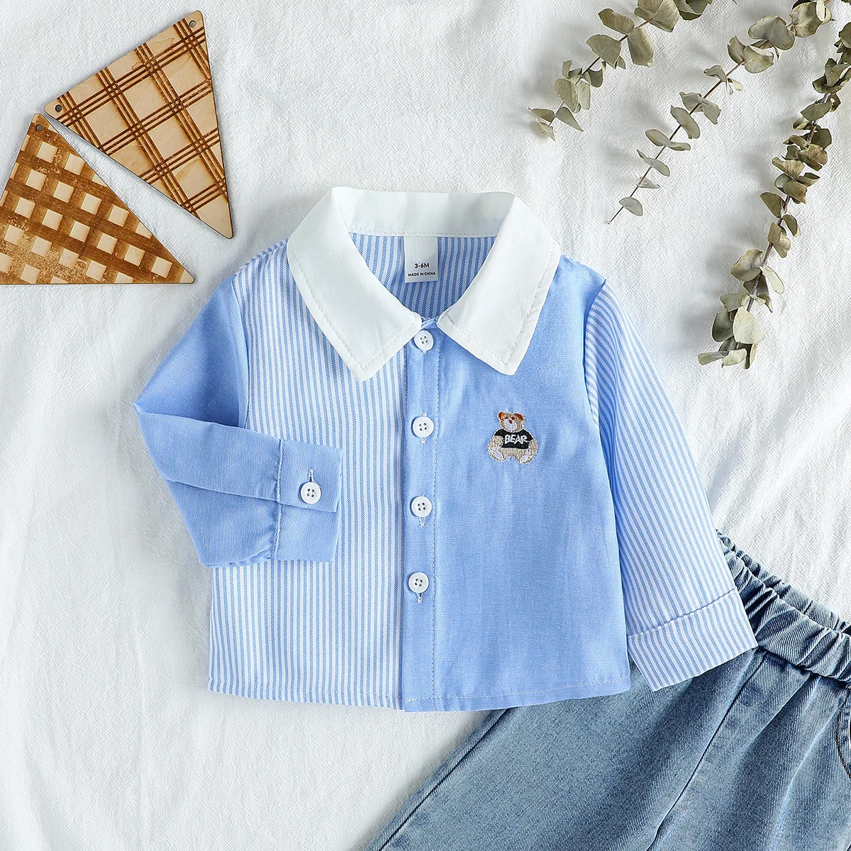 Autumn New Style Baby Boys' Simple Long-sleeve Loose-fitting Shirt Striped Embroidered Shirt for 3M-3Y Boys Casual Shirts
