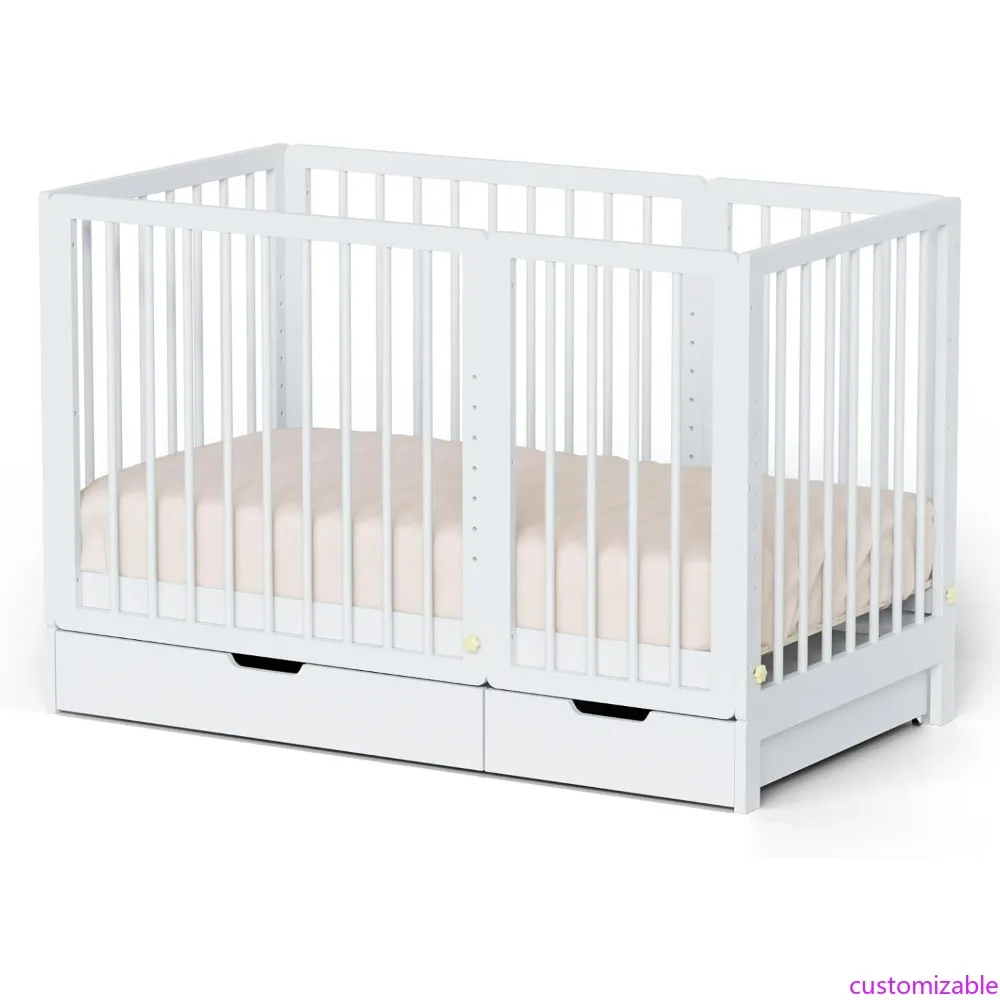 Joymor 8-in-1 Convertible Crib with Changer, Including 2-Inch Mattress, Transforms into Bassinet, Mid-Sized Crib, Full-Size Crib