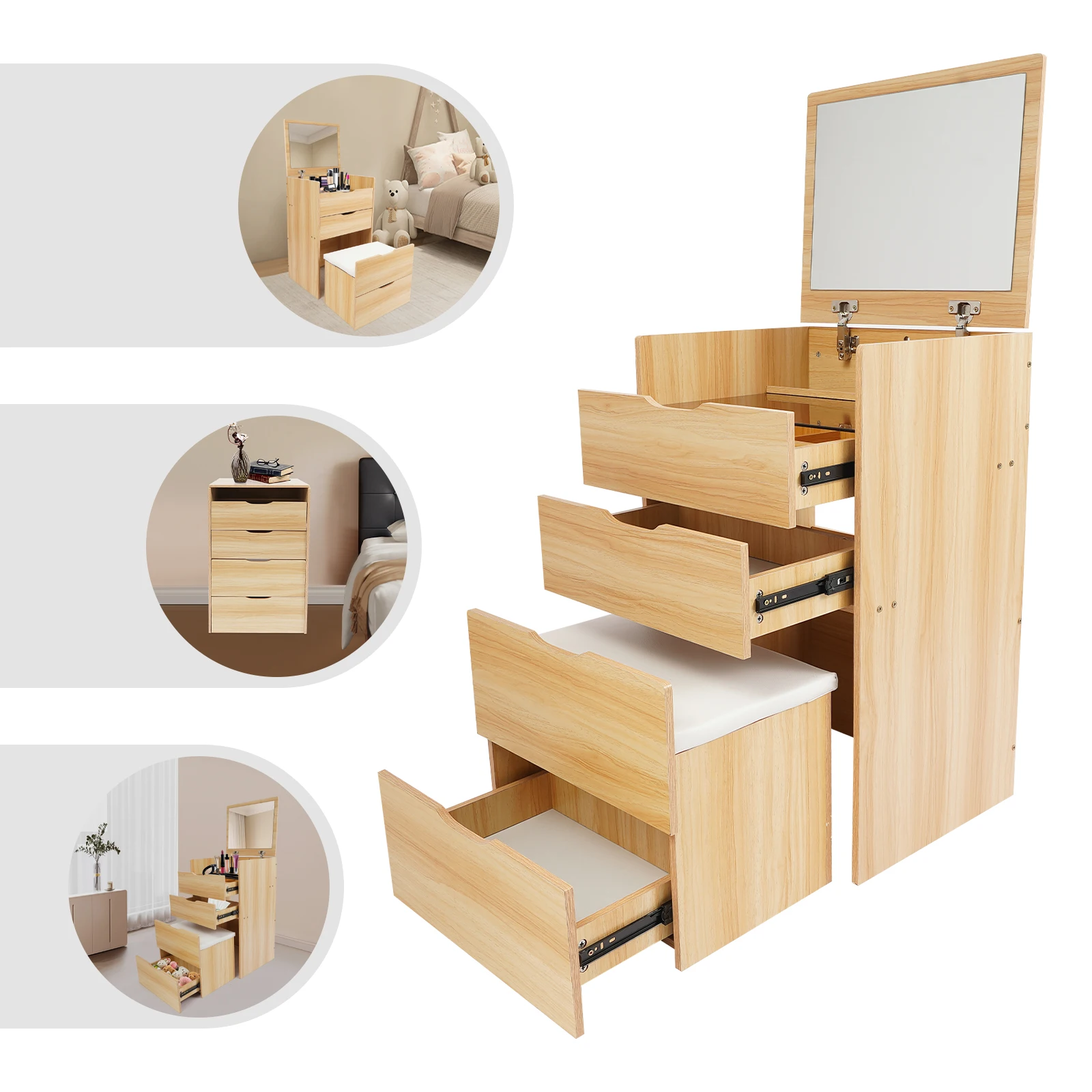 Modern Log Color Vanity Desk with 3 Drawers 1*Makeup Stool &Mirror, Makeup Vanity Table for Homes Apartments Dormitories