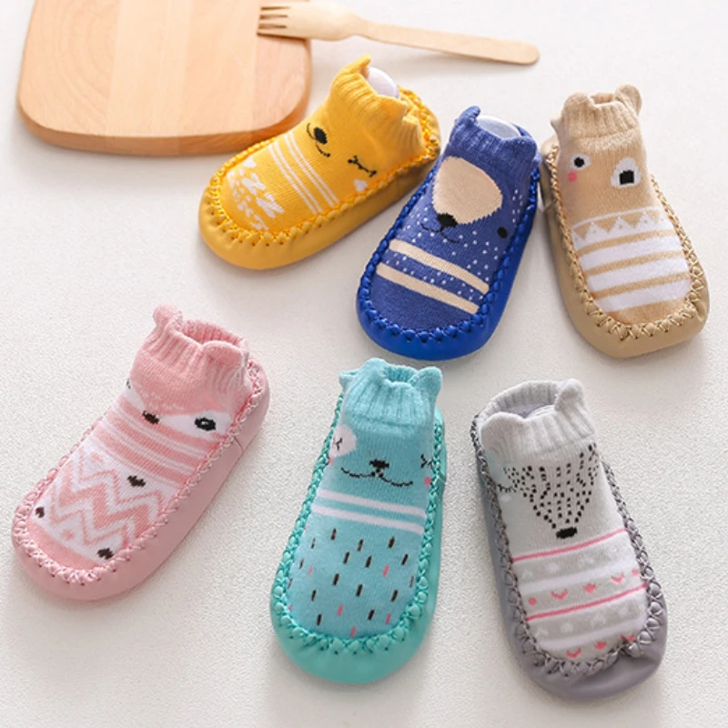 Baby Socks Shoes Kids Toddler First Walkers Animal Pattern Soft Non-Slip Sole Breathable Rubber Floor Shoes for Boys and Girls