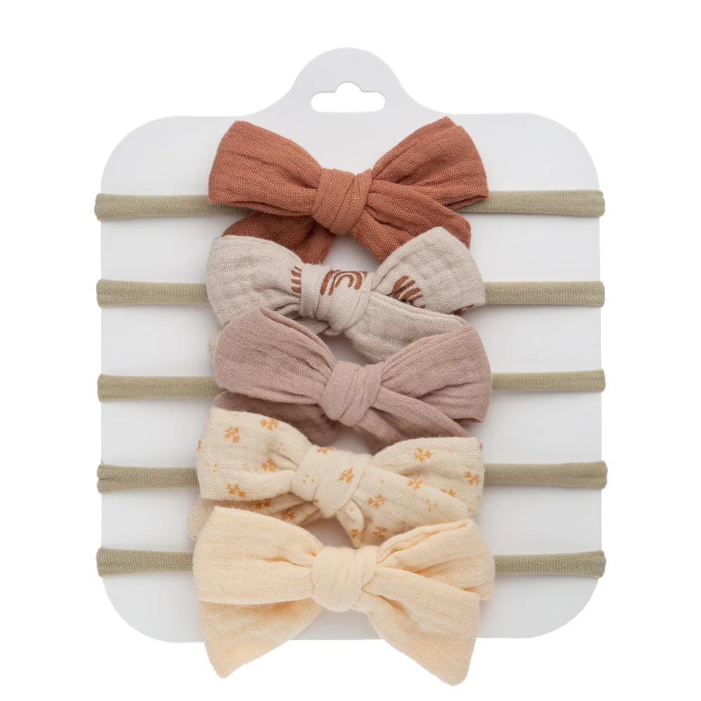 5Pcs/Lot Muslin Cotton Baby Headbands Flower Rainbow Print Elastic Nylon Hair Bands Fashion Boys Girls Headwear Headwraps