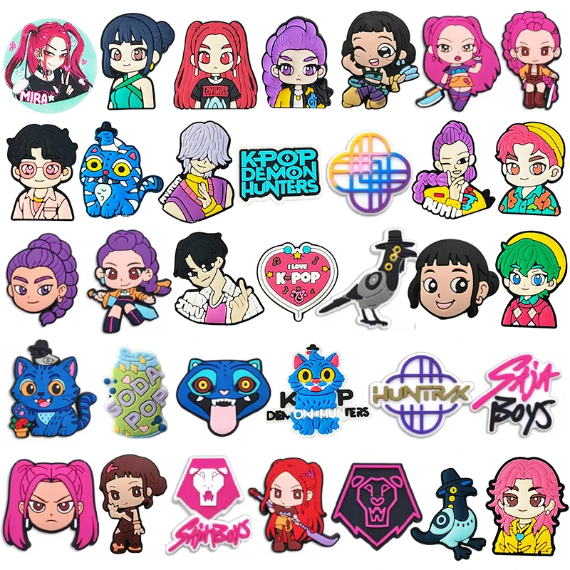 Hot sale K-POP Demon Hunter Cartoon Shoe Charms PVC DIY Shoes Decoration Sandal shoe Accessories Buckle for Kids X-mas Gifts