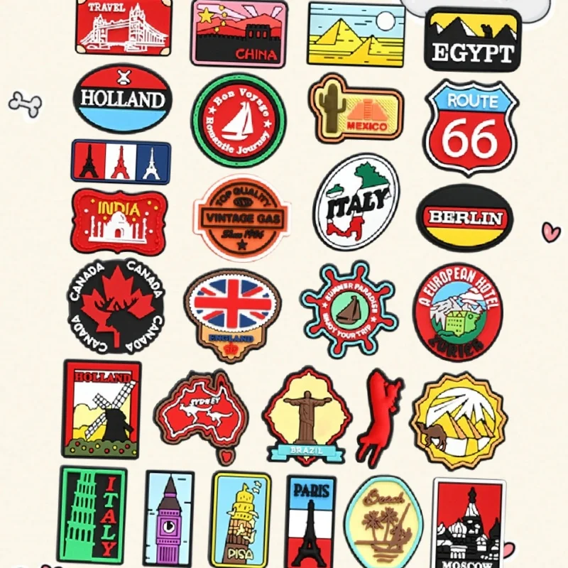 28Pcs World Scenic Spots Shoe Charms PVC DIY Garden Sandal Clog Decorations Buckle Set for Kids X-mas Gift Ideas