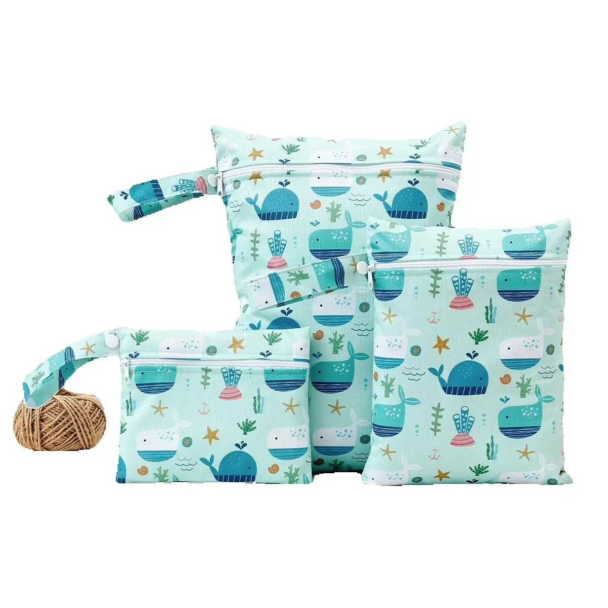 HappyFlute 3Pcs Set Washable Reusable Diaper Cover WetBag with Smooth Zipper Multi-Scenario Use Hanging Pocket