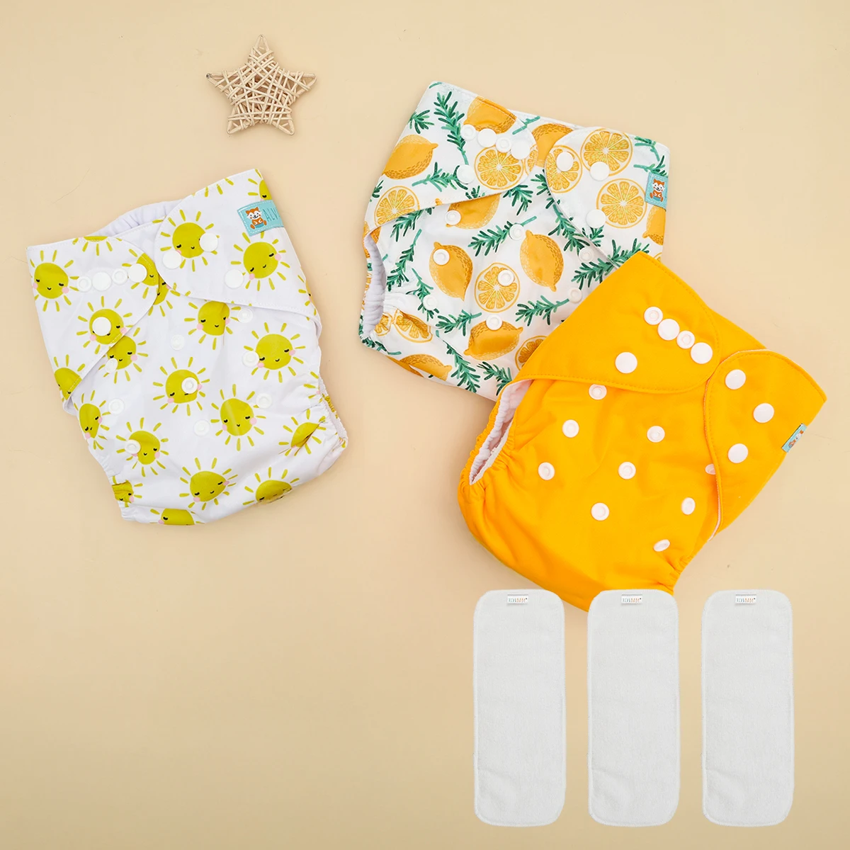 ALVABABY 3 diaper shells+3 Inserts Baby Cloth Diapers Snaps Adjustable Washable Reusable Cloth Nappy For Baby Girls and Boys