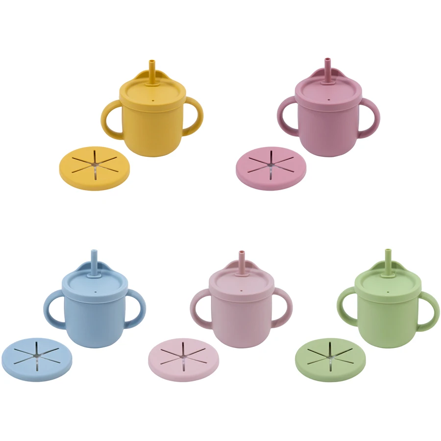 Baby Food Grade Feeding Cup Kid Double Handle Design Cute Cat Styling Straw Bottle Anti-Hot Leakproof Baby Silicone Feeding Cups